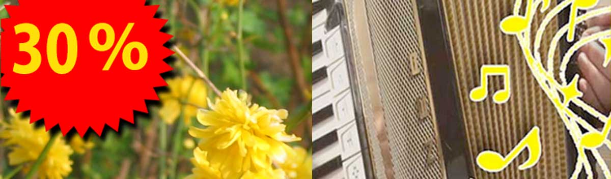 Hallo Akkordeon Fans, zu Ostern präsentiere ich euch zwei Angebote: die schönsten Frühlingslieder gibt es jetzt zwei Wochen lang zum Sonderpreis, und mein Video Tutorial „Improvisation – Bluestonleiter“ gibt es mit 30 % Rabatt.